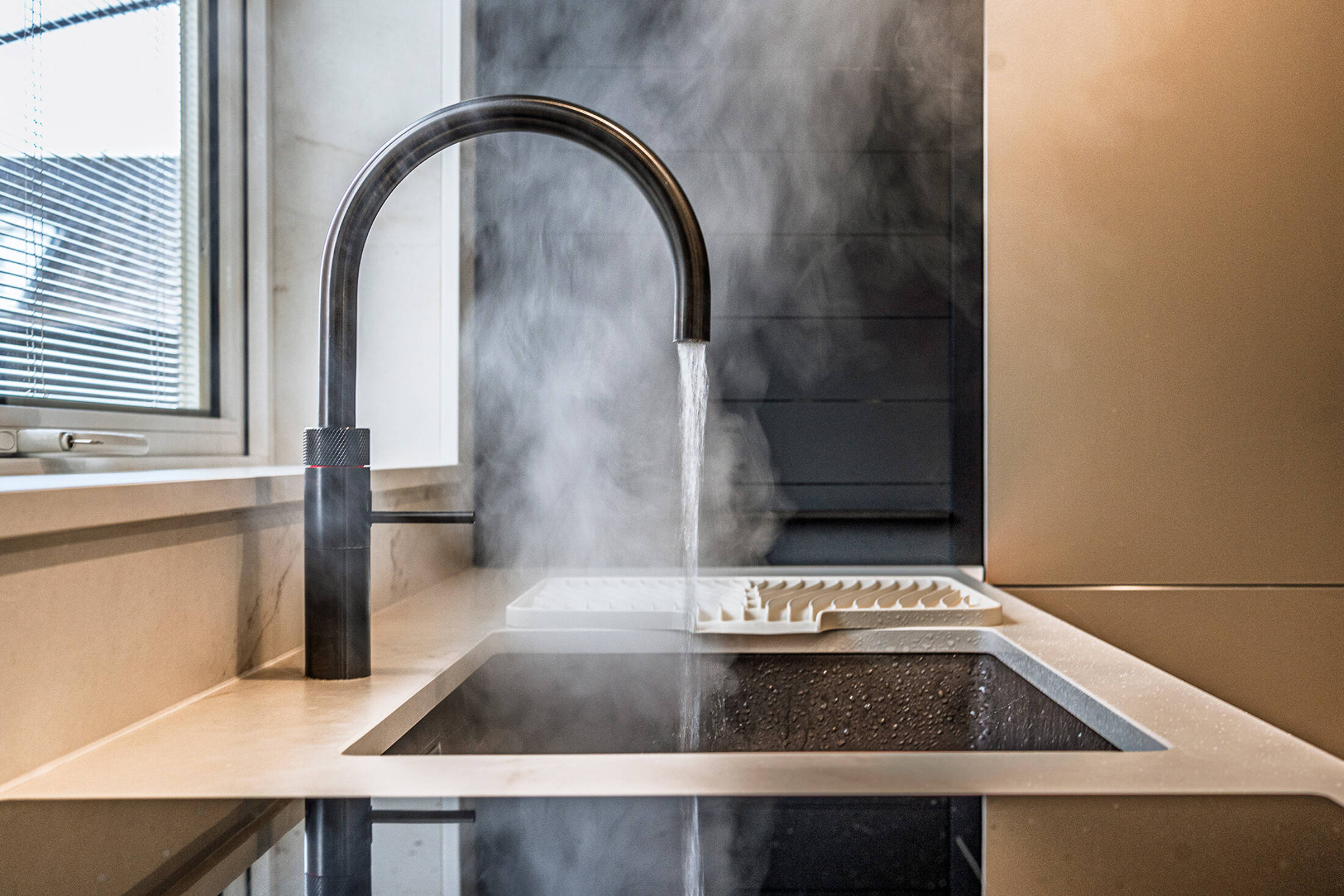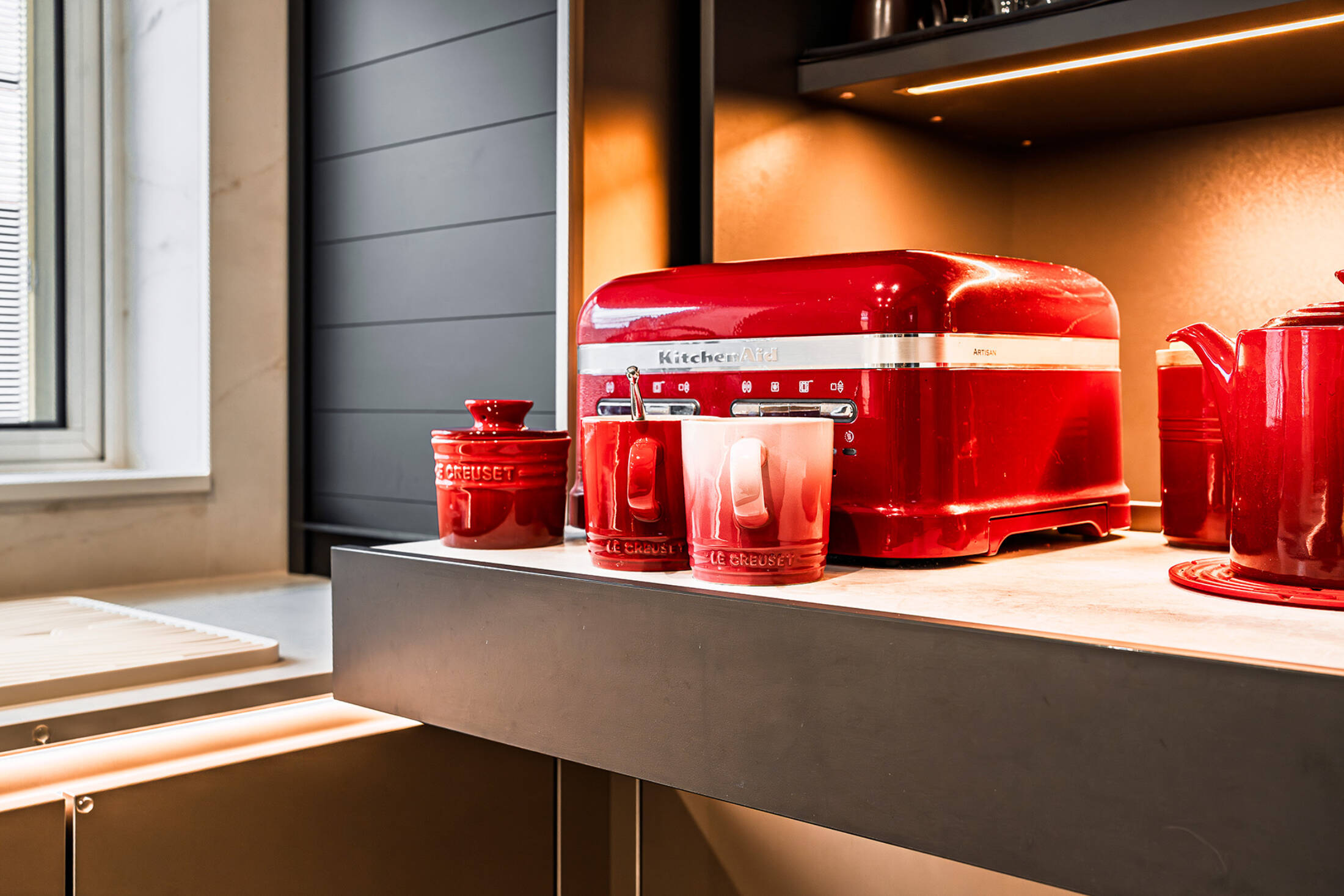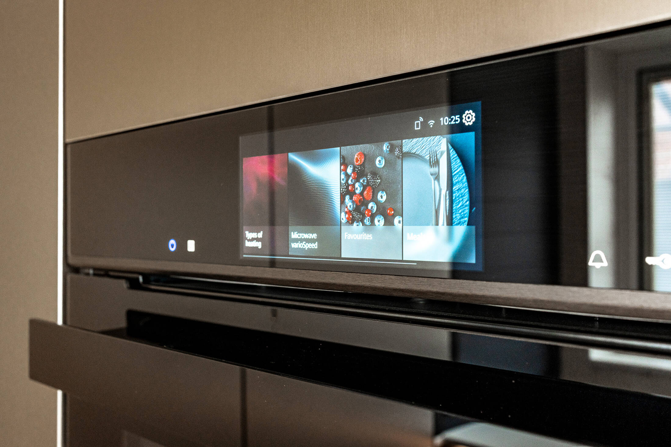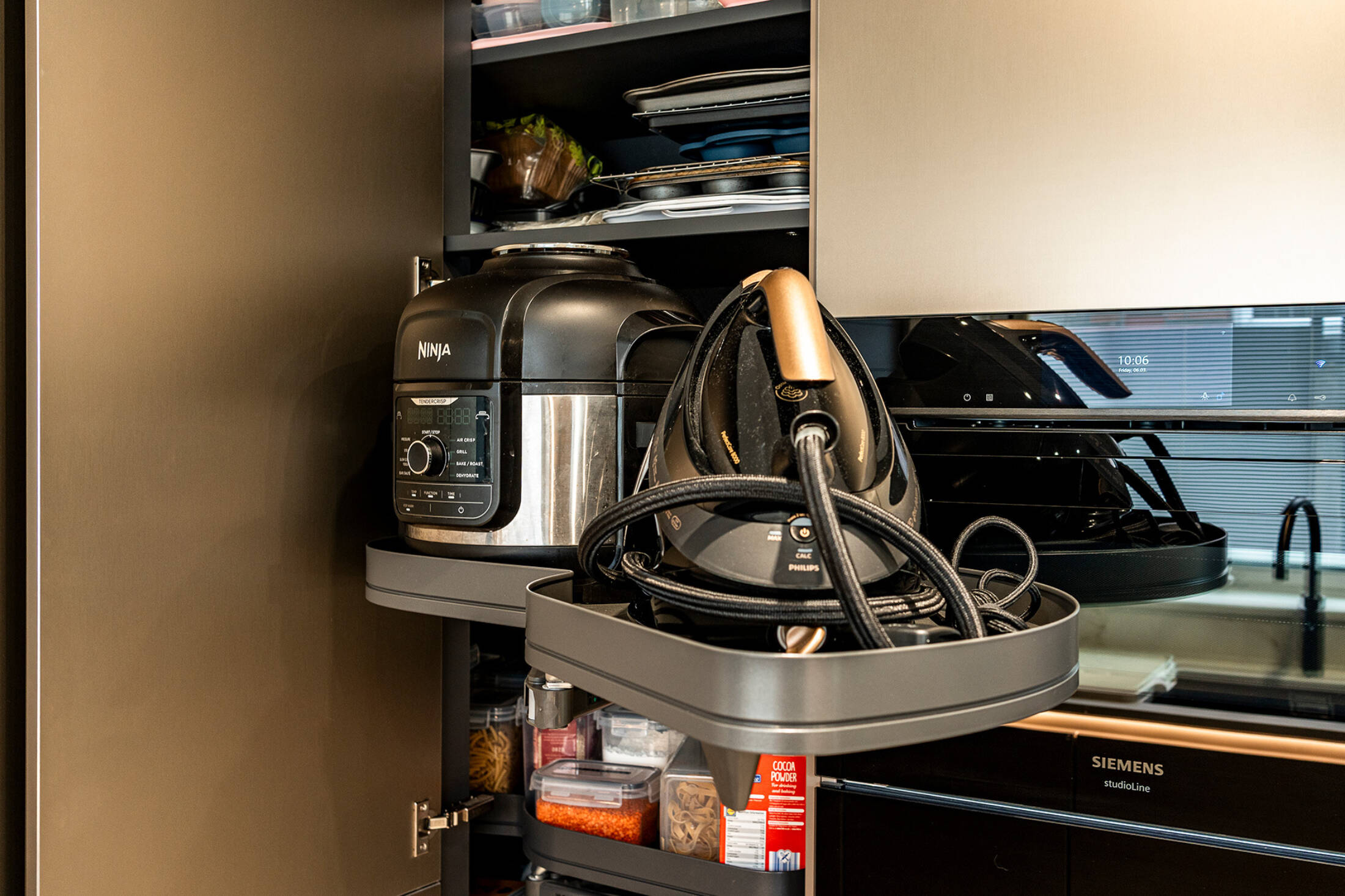 Features Aluro - Oxide Bronze doors and DEKTON worktops .